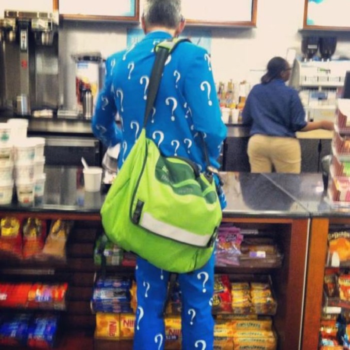 I don’t know what this man knows or where he got his amazing suit. But as long as he’s wearing it, I think he’s obligated to answer any questions I have. Now, why is the sky blue?