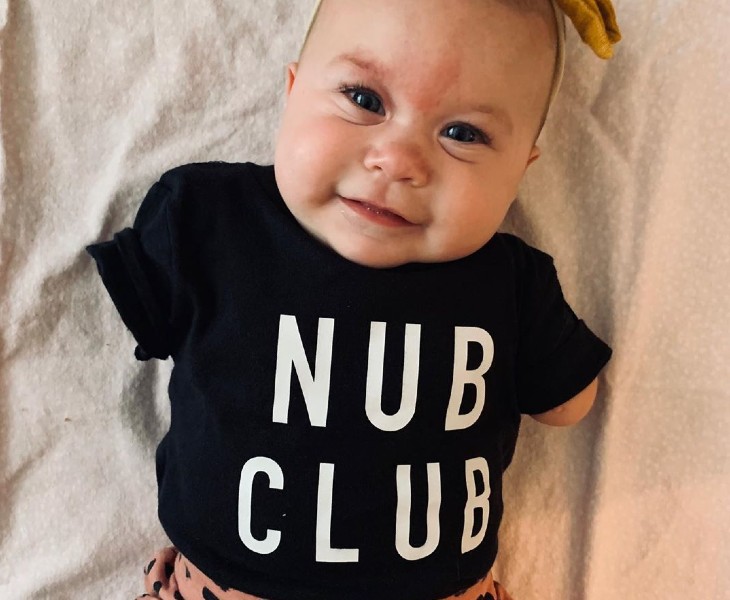“Esto se sintió como un puñetazo en el estómago. Me robó el aliento. Me derrumbó y los sollozos se desgarraron, y las visiones de mi pequeño y perfecto bebé se hicieron añicos. ¿Sin manos? Yo nunca había oído hablar de esto. No estaba en mi radar. Nunca se me había pasado por la mente, nunca había sido un miedo o una preocupación fugaces. Simplemente había asumido que ella tenía todas las extremidades, que todas las piezas estaban allí”.
