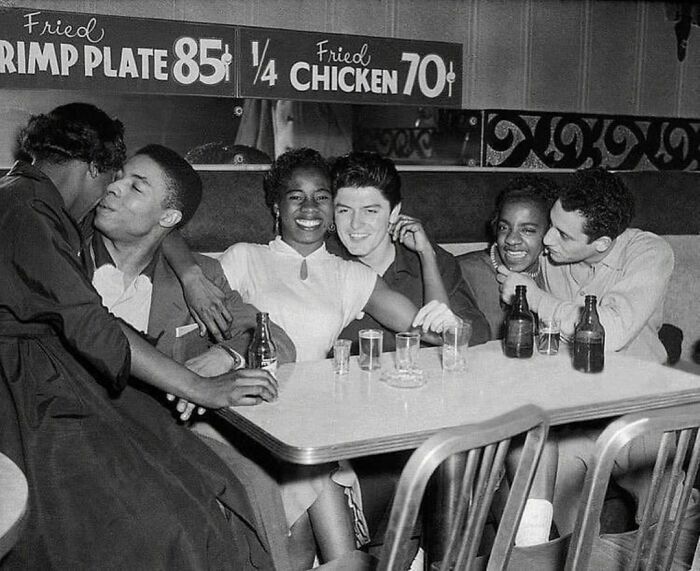 Just young couples having fun in their day and not a cellphone in sight. But look at those smiles though. To be young and carefree, without a care about getting likes and views. That shrimp plate sounds good too.