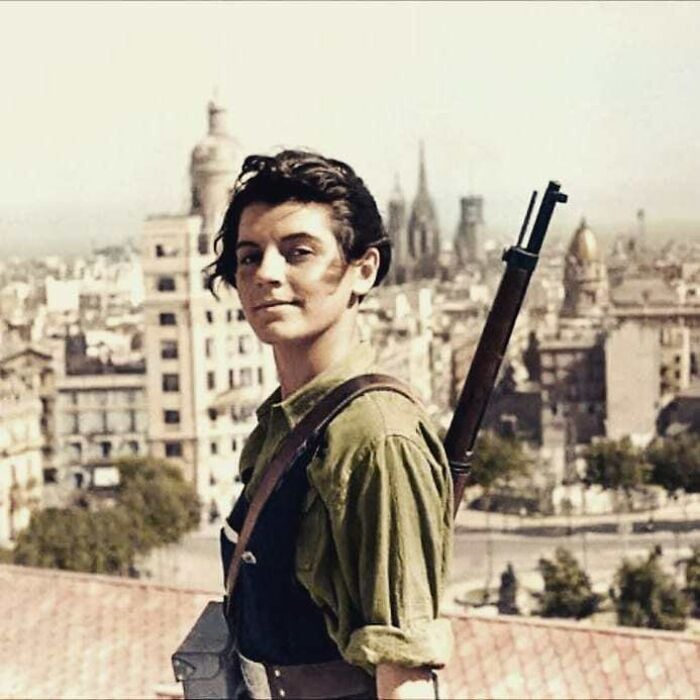 This 17-year-old was a social activist, journalist, and translator. Here she’s standing on the rooftop of the Hotel Colón in Barcelona. Hard times for sure but that smile on her pretty face seemed to paint a different picture.